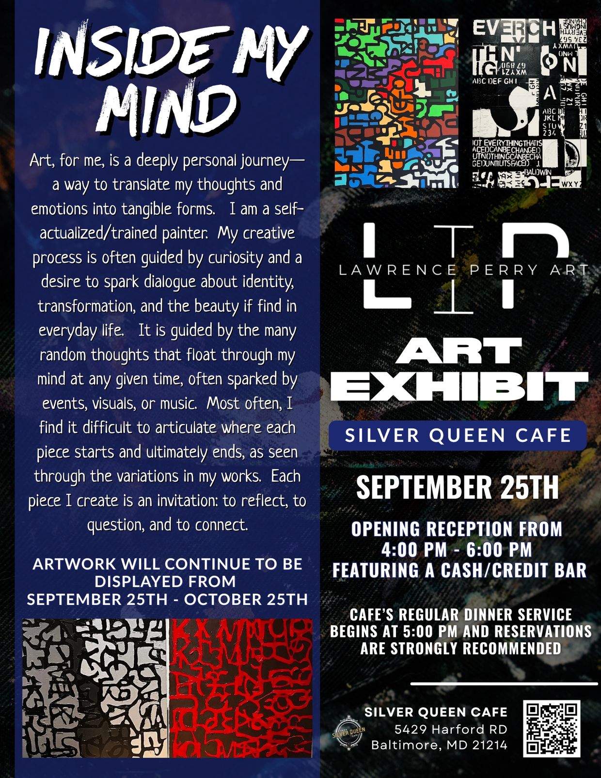 Join us at Silver Queen Café for an evening where creativity meets community. Surrounded by good food and great company, you’ll experience original artwork up close — each piece telling its own story. Come enjoy a cozy atmosphere, connect with the art, and maybe even find the perfect piece to take home.